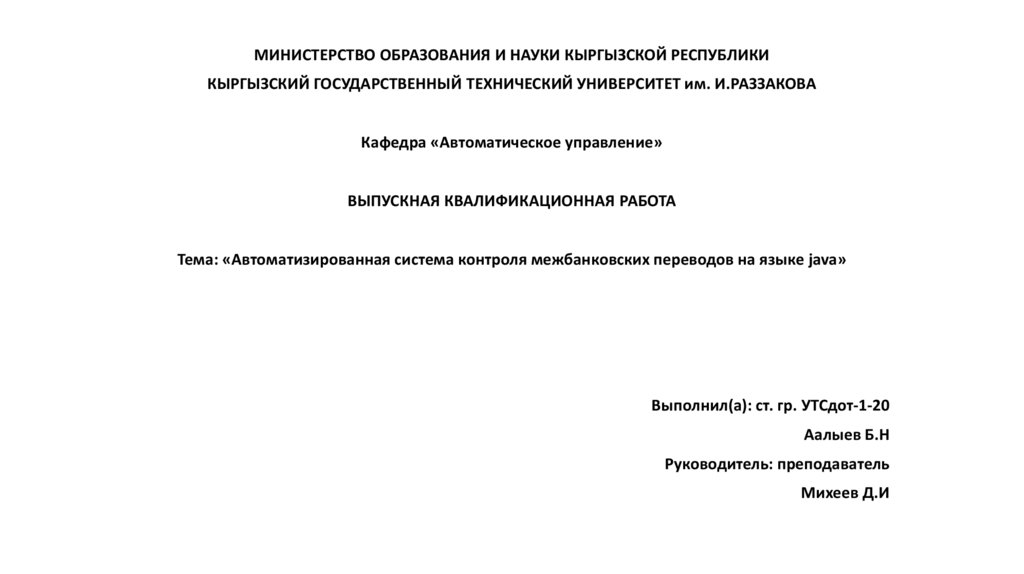 МИНИСТЕРСТВО ОБРАЗОВАНИЯ И НАУКИ КЫРГЫЗСКОЙ РЕСПУБЛИКИКЫРГЫЗСКИЙ ГОСУДАРСТВЕННЫЙ ТЕХНИЧЕСКИЙ УНИВЕРСИТЕТ им. И.РАЗЗАКОВА