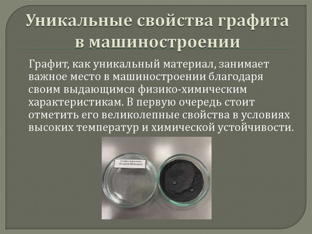 Графит, как уникальный материал, занимаетважное место в машиностроении благодаря