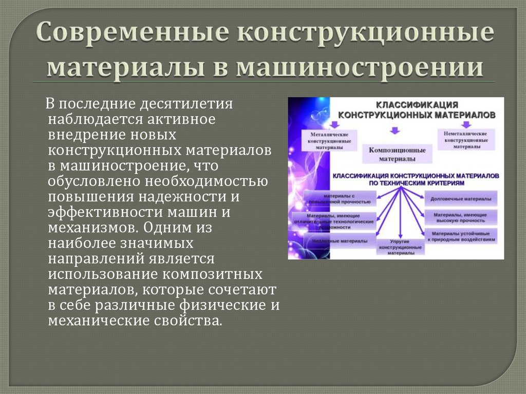 Современные материалы, используемые вмашиностроении, предоставляют разнообразие
