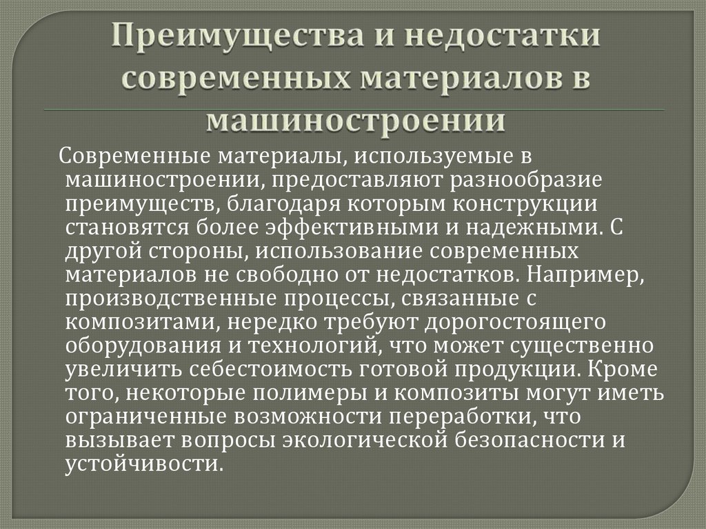 7. Преимущества и недостатки современных материалов в машиностроении