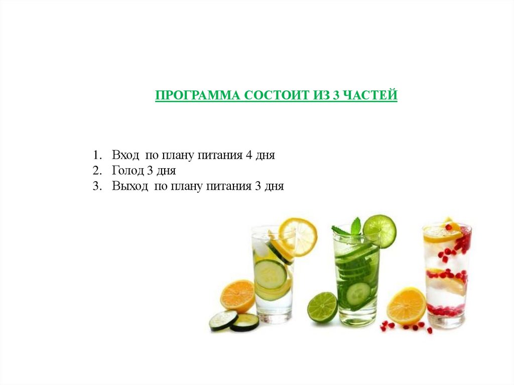 ПРОГРАММА СОСТОИТ ИЗ 3 ЧАСТЕЙ1. Вход по плану питания 4 дня