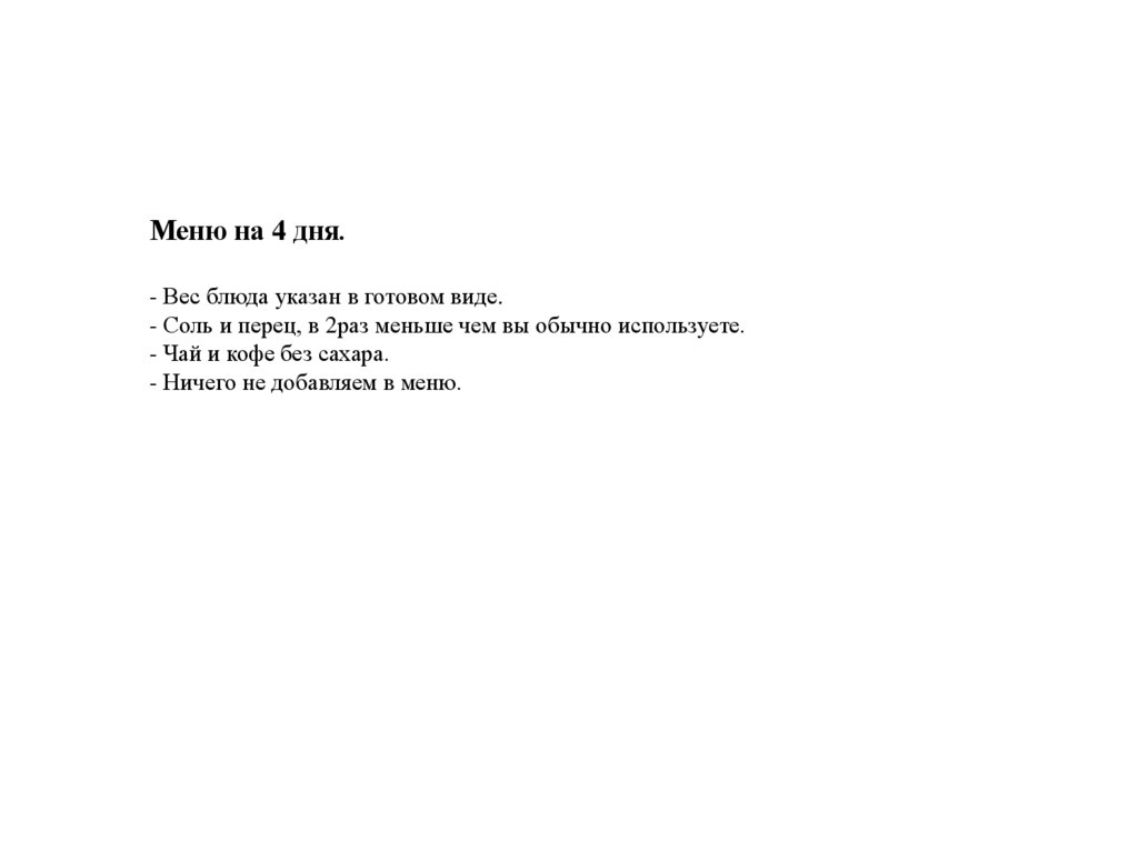 Меню на 4 дня.- Вес блюда указан в готовом виде.
