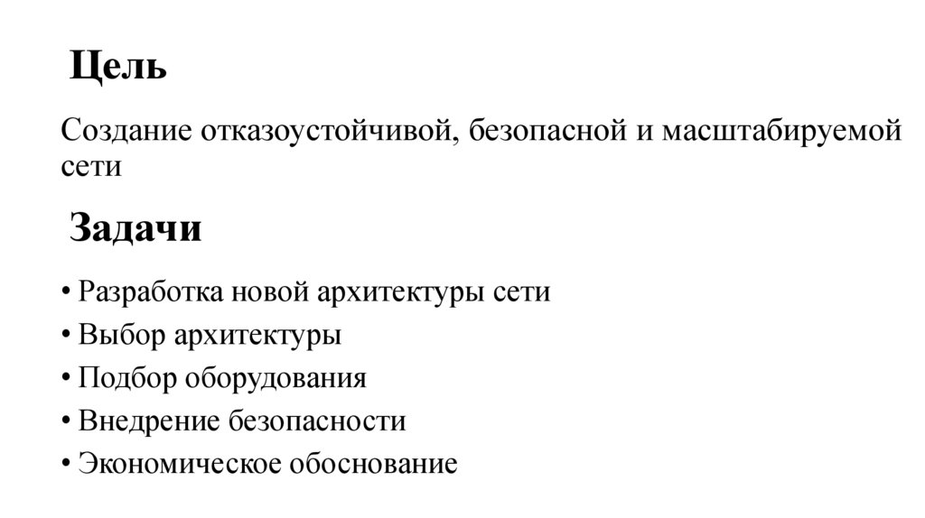 • Разработка новой архитектуры сети