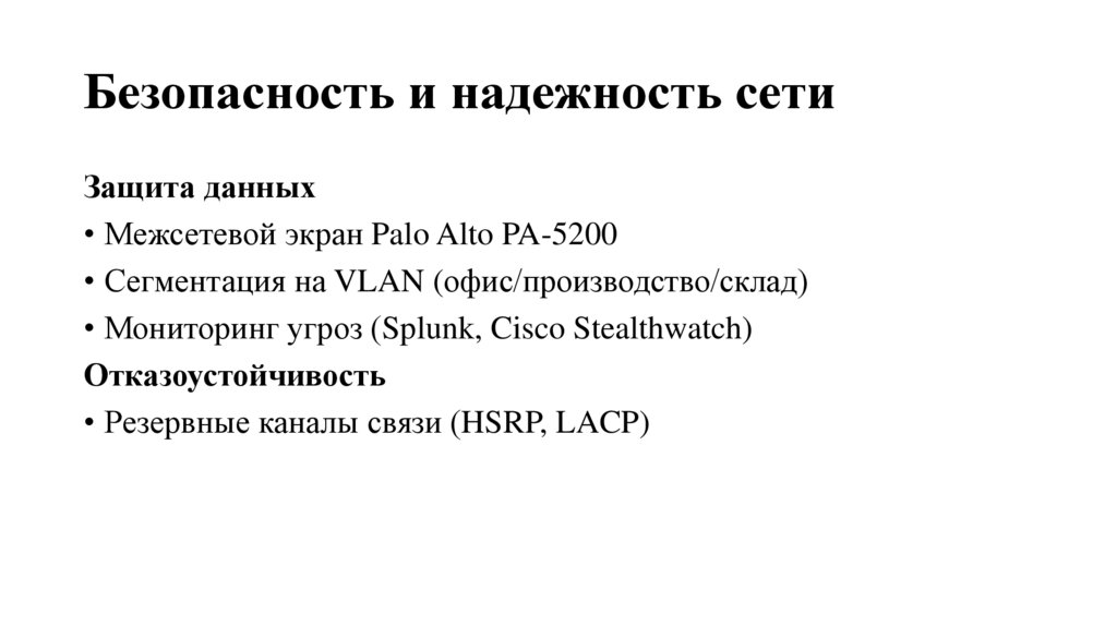 • Резервные каналы связи (HSRP, LACP)