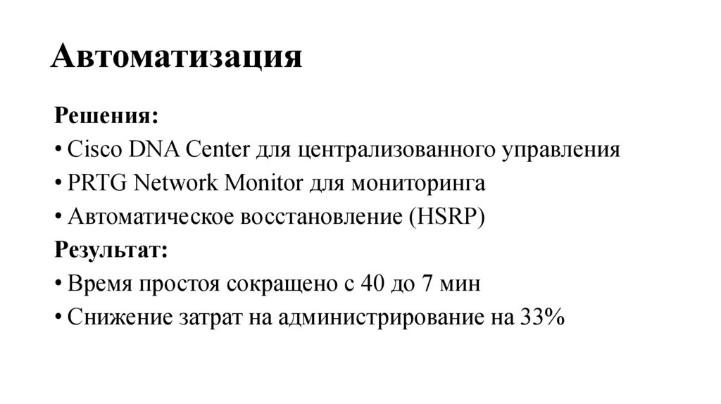 • Автоматическое восстановление (HSRP)