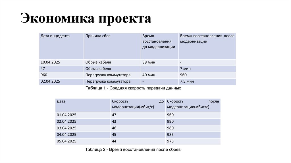 Таблица 2 - Время восстановления после сбоев