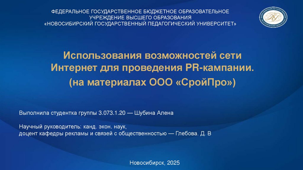 Использования возможностей сети Интернет для проведения PR-кампании (на материалах ООО «СройПро»)