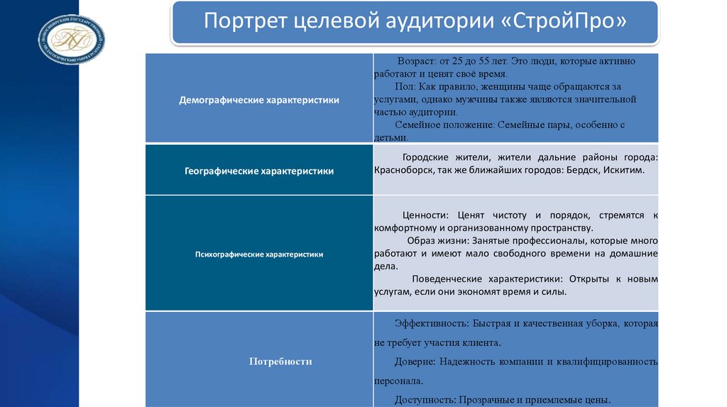 Портрет целевой аудитории «СтройПро»Демографические характеристики