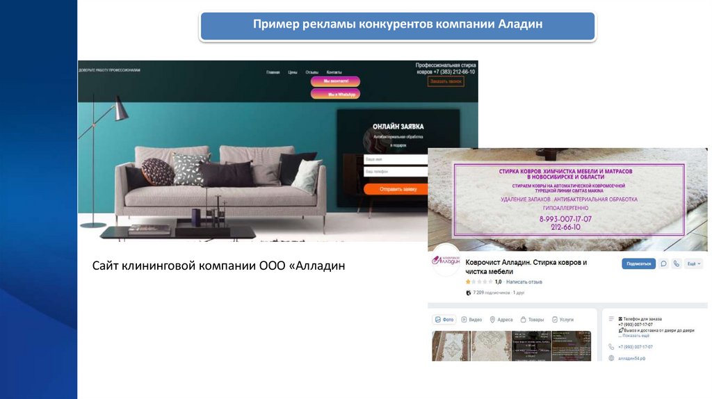 Пример рекламы конкурентов компании АладинСайт клининговой компании ООО «Алладин