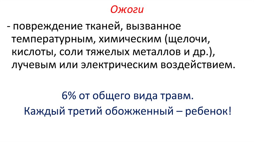 Ожоги- повреждение тканей, вызванное