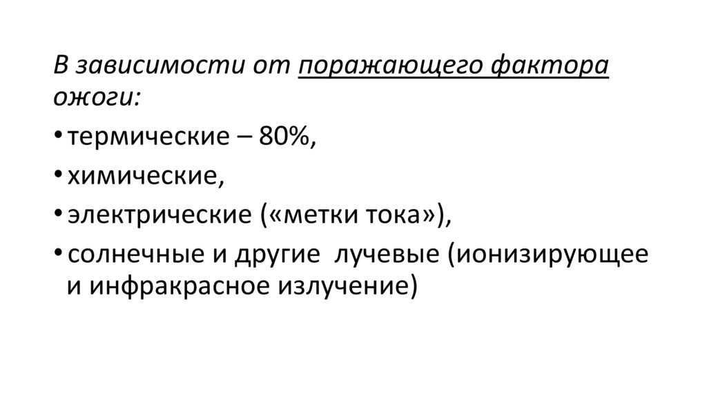 В зависимости от поражающего фактораожоги: