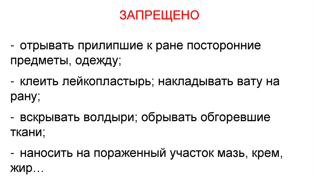 ЗАПРЕЩЕНО- отрывать прилипшие к ране посторонние