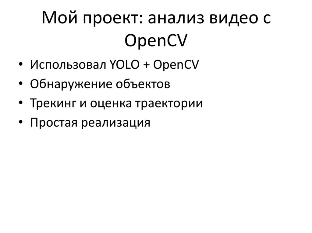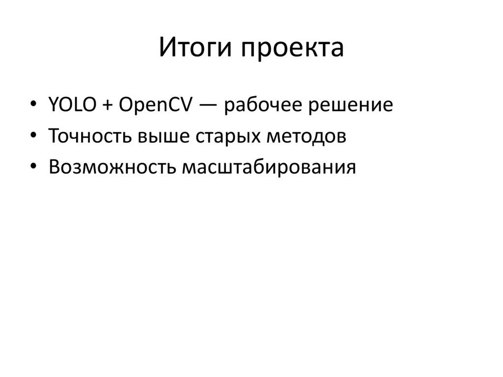 Итоги проекта• YOLO + OpenCV — рабочее решение