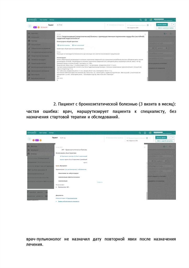 2. Пациент с бронхоэктатической болезнью (3 визита в месяц):частая ошибка: врач, маршрутизирует пациента к специалисту, без