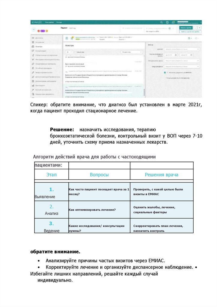 • Анализируйте причины частых визитов через ЕМИАС.