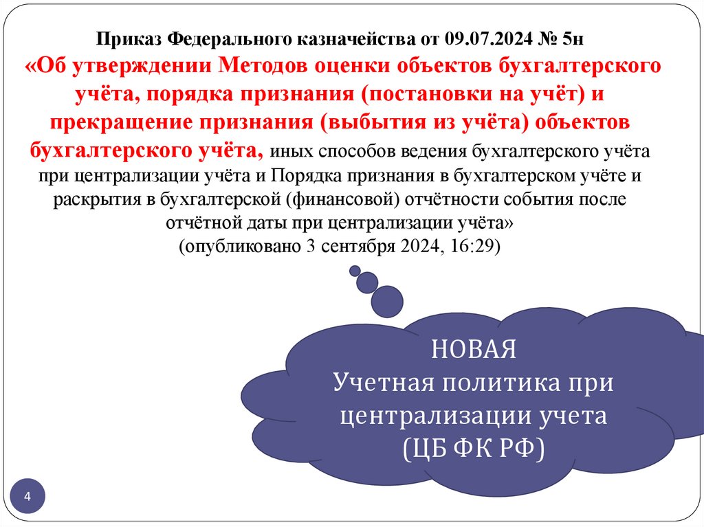 34. Приказ Федерального казначейства от 09.07.2024 № 5н «Об утверждении Методов оценки объектов бухгалтерского учёта, порядка