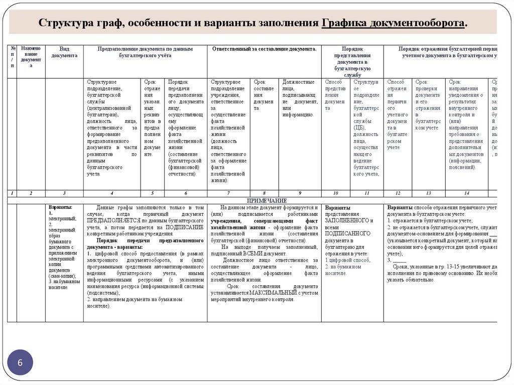 6. Структура граф, особенности и варианты заполнения Графика документооборота.