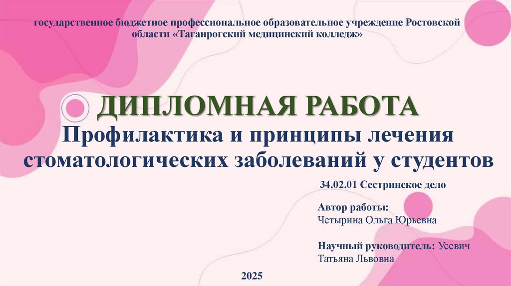 1. ДИПЛОМНАЯ РАБОТА Профилактика и принципы лечения стоматологических заболеваний у студентов