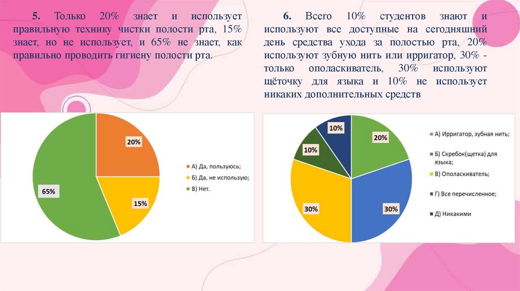 5. Только 20% знает и используетправильную технику чистки полости рта, 15%