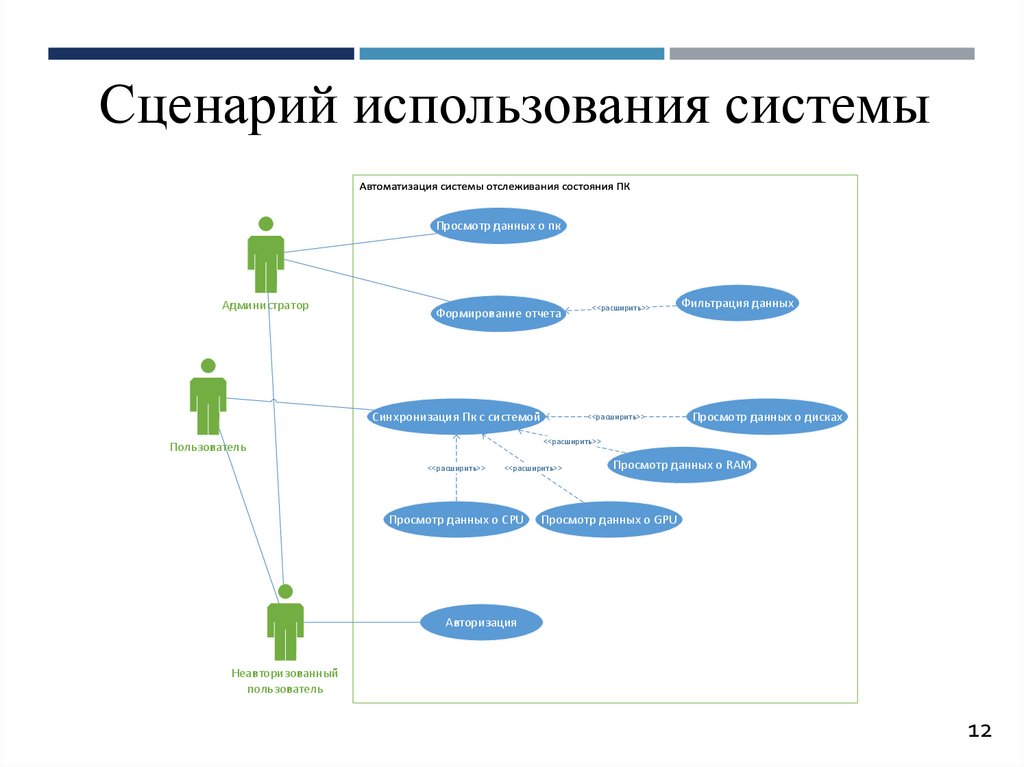 Сценарий использования системыПросмотр данных о пк