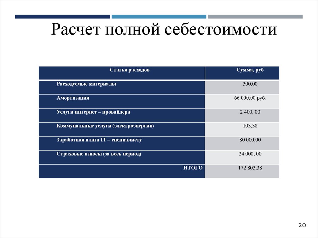 Расчет полной себестоимостиСтатья расходов
