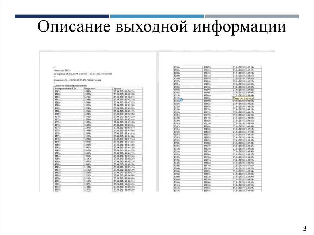 Описание выходной информации3