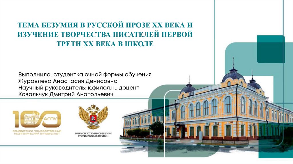 ТЕМА БЕЗУМИЯ В РУССКОЙ ПРОЗЕ ХХ ВЕКА ИИЗУЧЕНИЕ ТВОРЧЕСТВА ПИСАТЕЛЕЙ ПЕРВОЙ