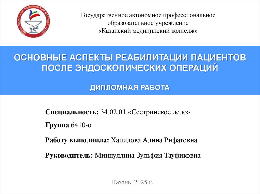 1. ОСНОВНЫЕ АСПЕКТЫ РЕАБИЛИТАЦИИ ПАЦИЕНТОВ ПОСЛЕ ЭНДОСКОПИЧЕСКИХ ОПЕРАЦИЙ ДИПЛОМНАЯ РАБОТА