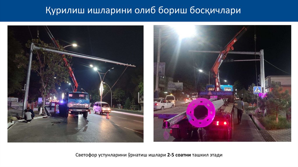 Қурилиш ишларини олиб бориш босқичлариСветофор устунларини ўрнатиш ишлари 2-5 соатни ташкил этади
