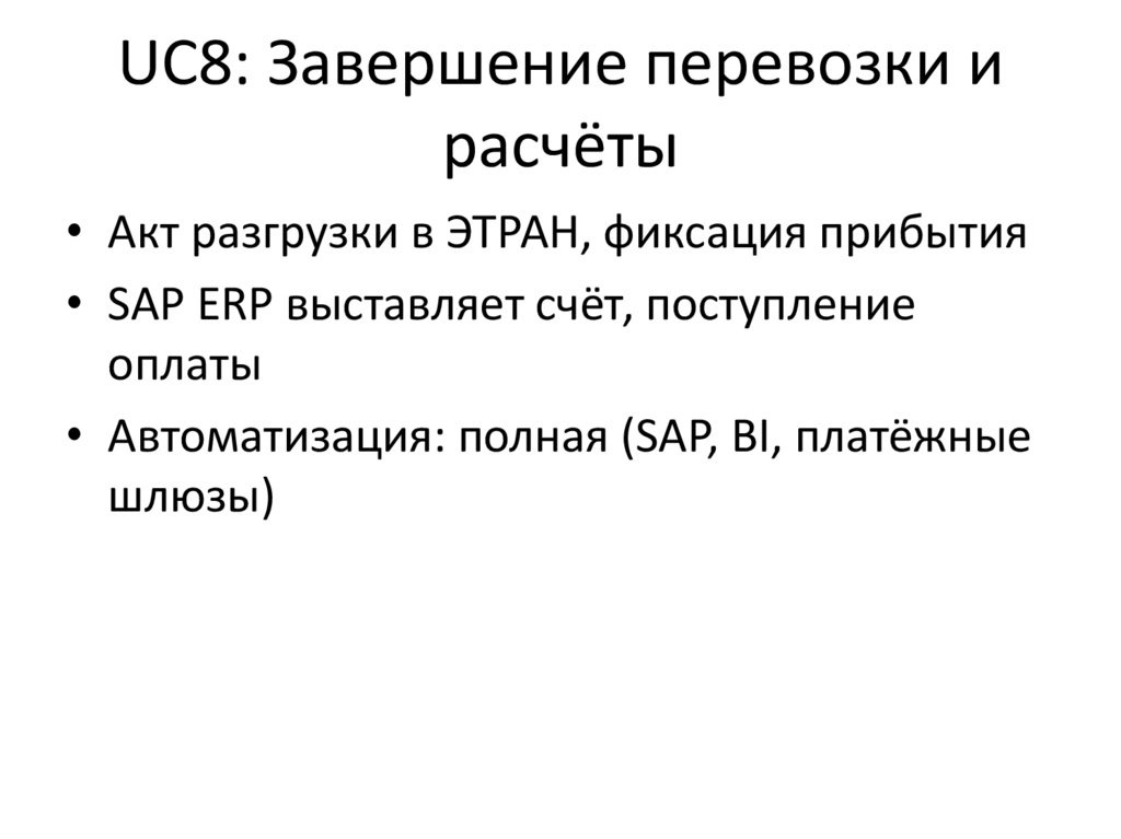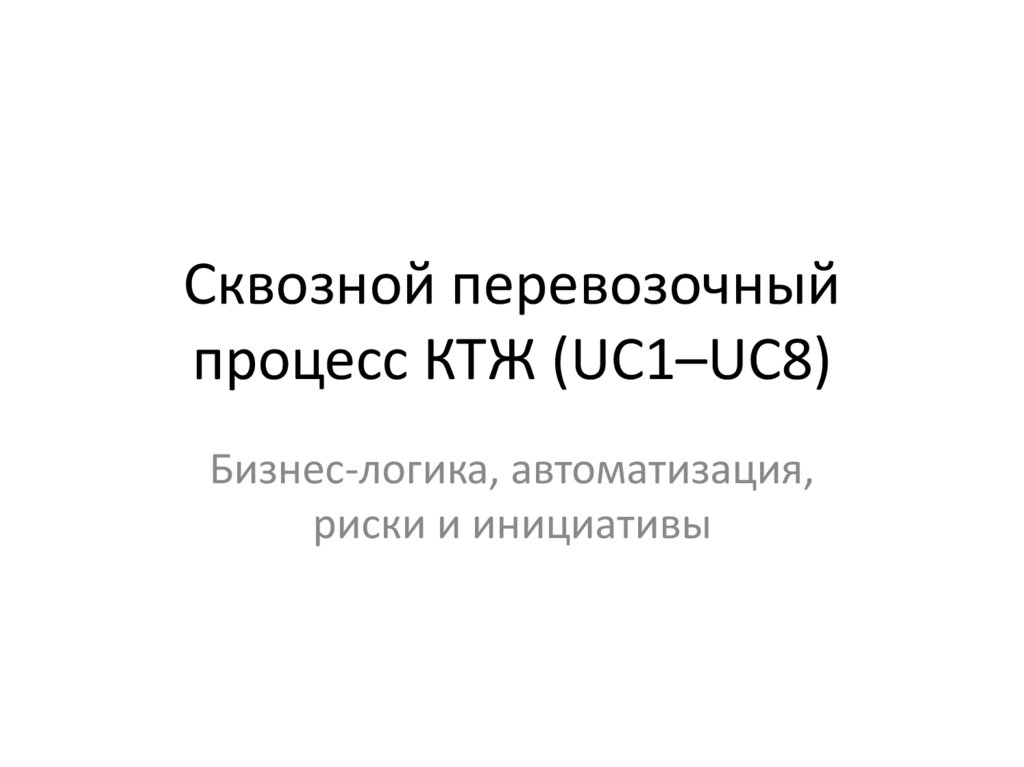Сквозной перевозочныйпроцесс КТЖ (UC1–UC8)