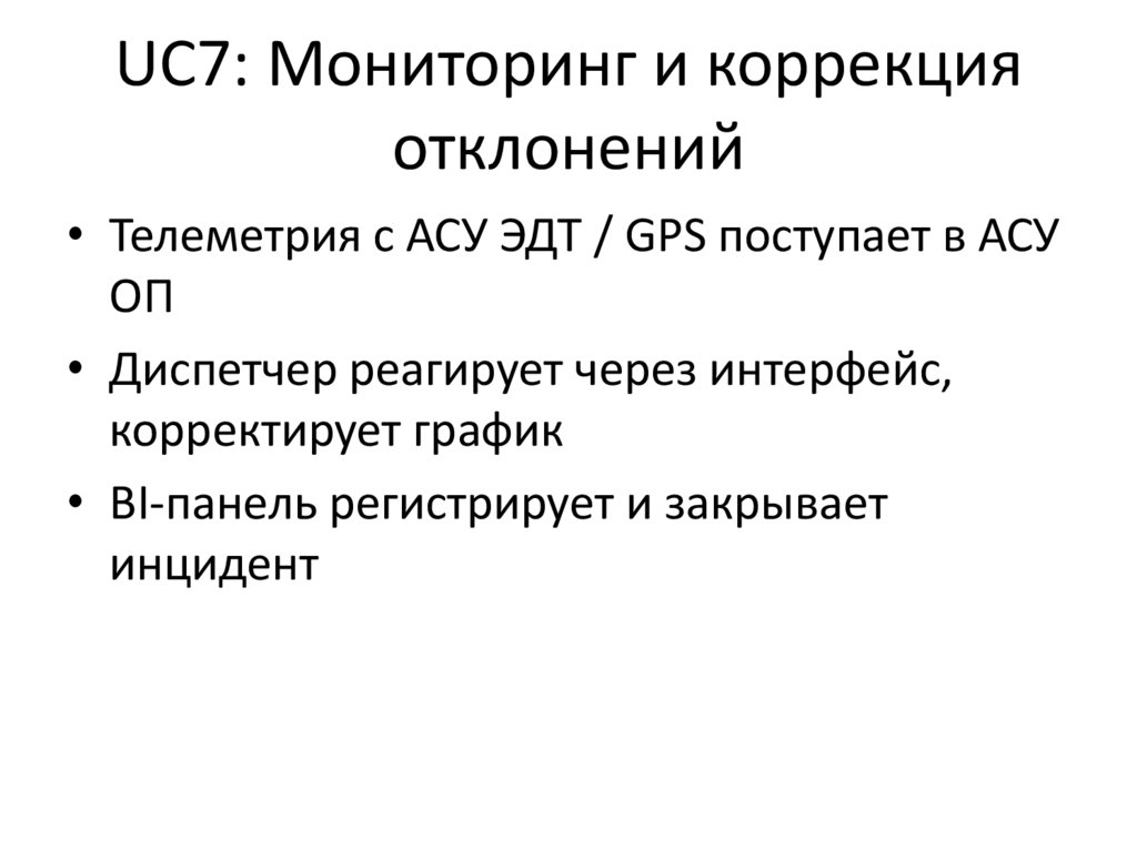 • Поздняя реакция на отклонения (UC7)