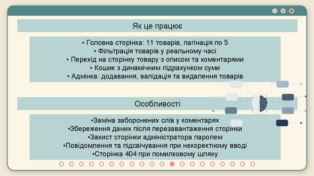 Як це працює• Головна сторінка: 11 товарів, пагінація по 5