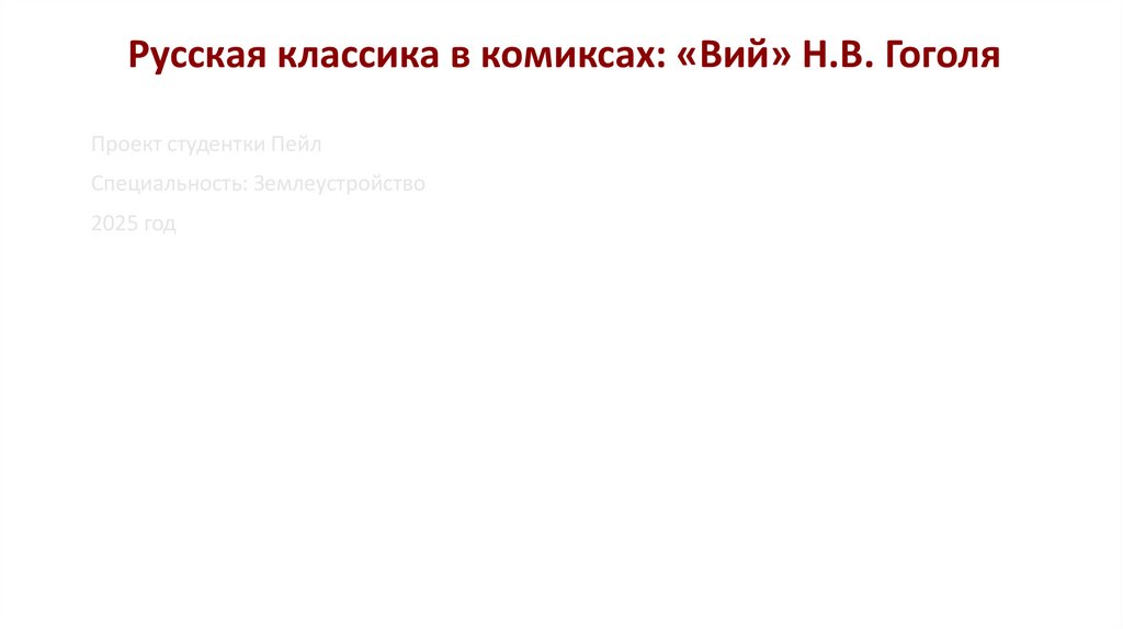 Русская классика в комиксах: «Вий» Н.В. ГоголяПроект студентки Пейл