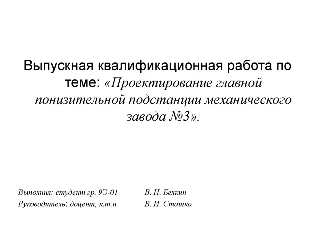 Выпускная квалификационная работа потеме: «Проектирование главной