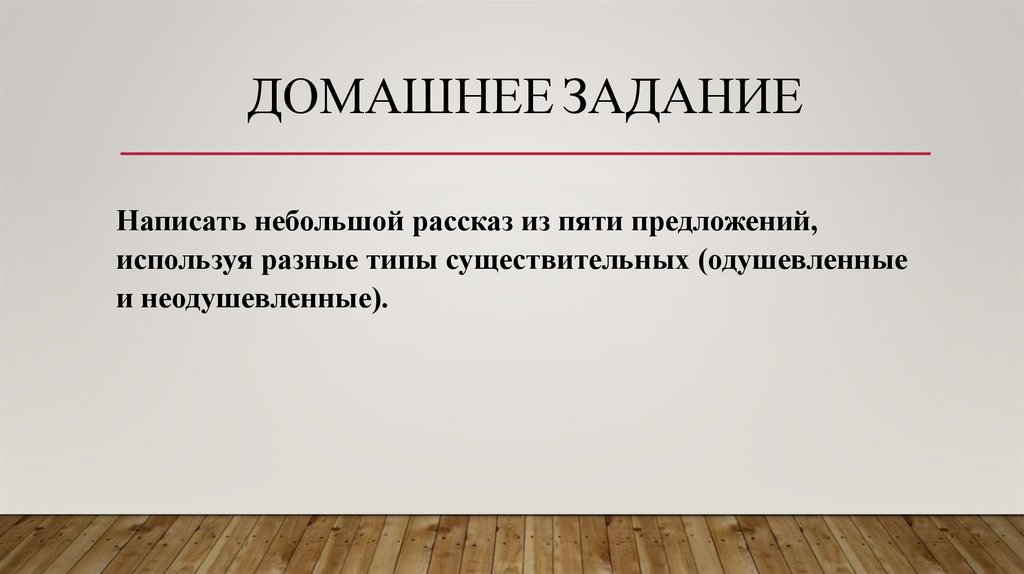 ДОМАШНЕЕ ЗАДАНИЕНаписать небольшой рассказ из пяти предложений,