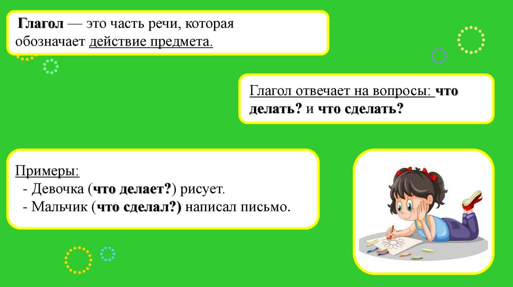 Глагол — это часть речи, котораяобозначает действие предмета.