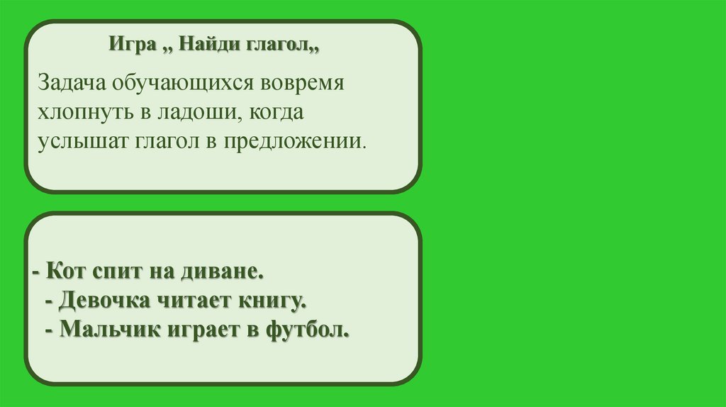 Игра ,, Найди глагол,,Задача обучающихся вовремя