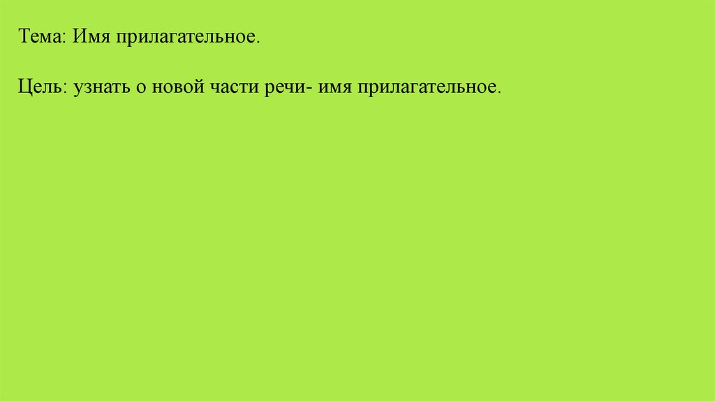 Тема: Имя прилагательное.Цель: узнать о новой части речи- имя прилагательное.