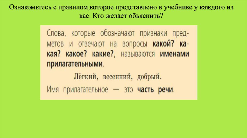 Ознакомьтесь с правилом,которое представлено в учебнике у каждого извас. Кто желает обьяснить?