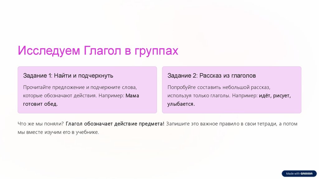 Исследуем Глагол в группахЗадание 1: Найти и подчеркнуть