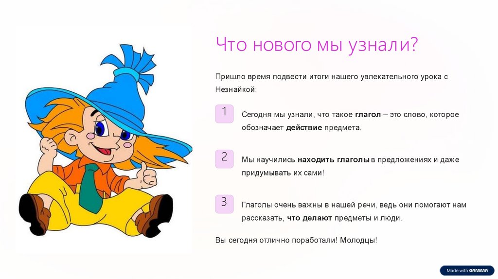 Сегодня мы узнали, что такое глагол – это слово, которое
