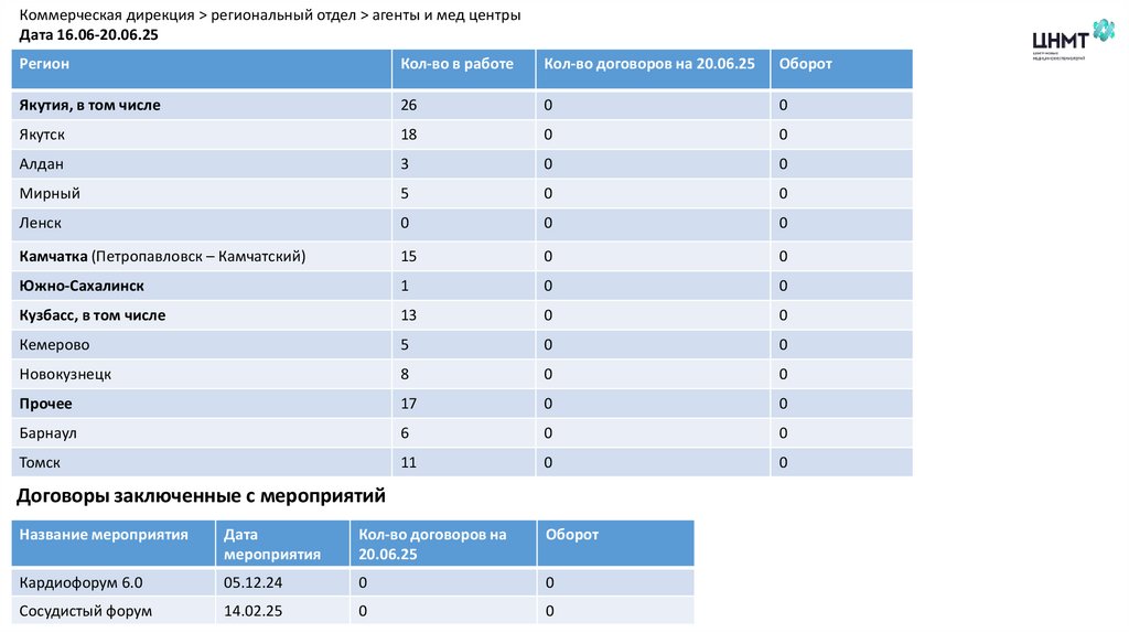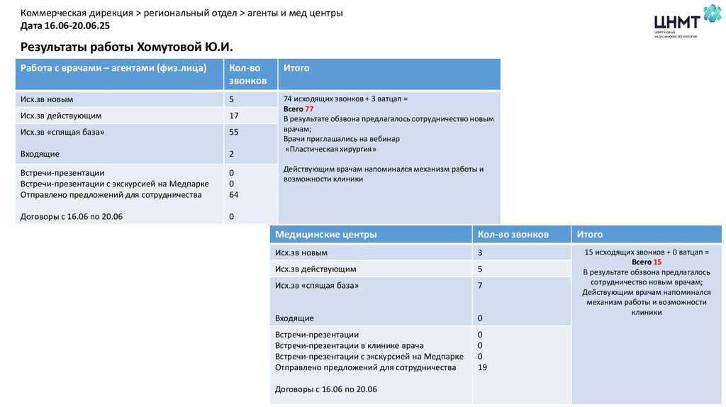 Коммерческая дирекция > региональный отдел > агенты и мед центрыДата 16.06-20.06.25