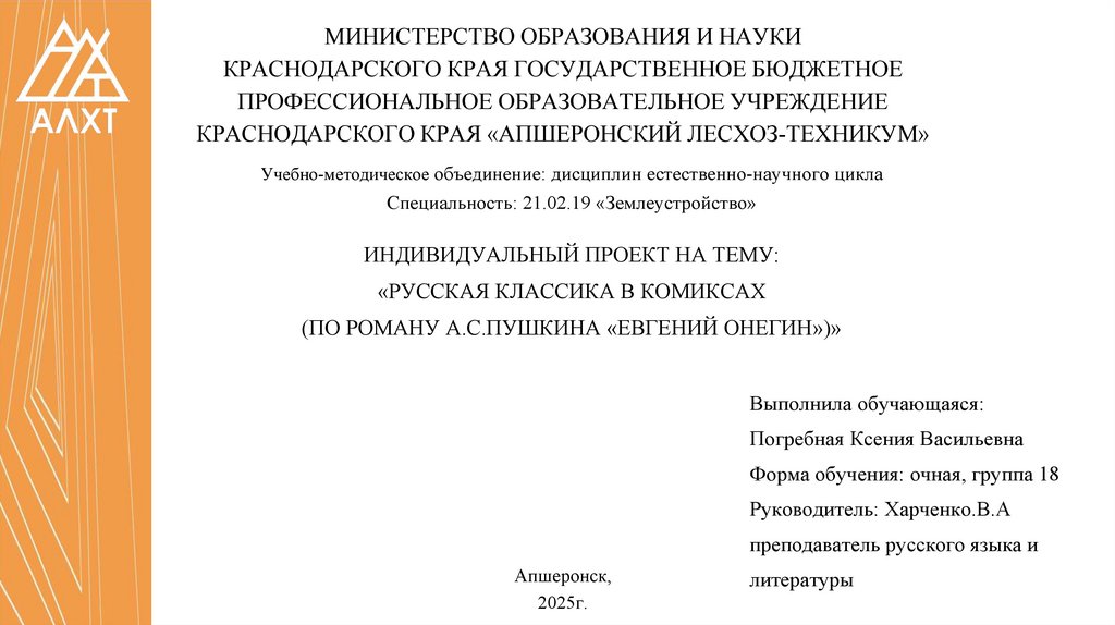 КРАСНОДАРСКОГО КРАЯ «АПШЕРОНСКИЙ ЛЕСХОЗ-ТЕХНИКУМ»