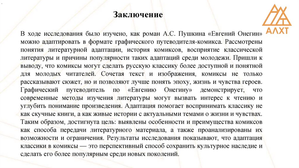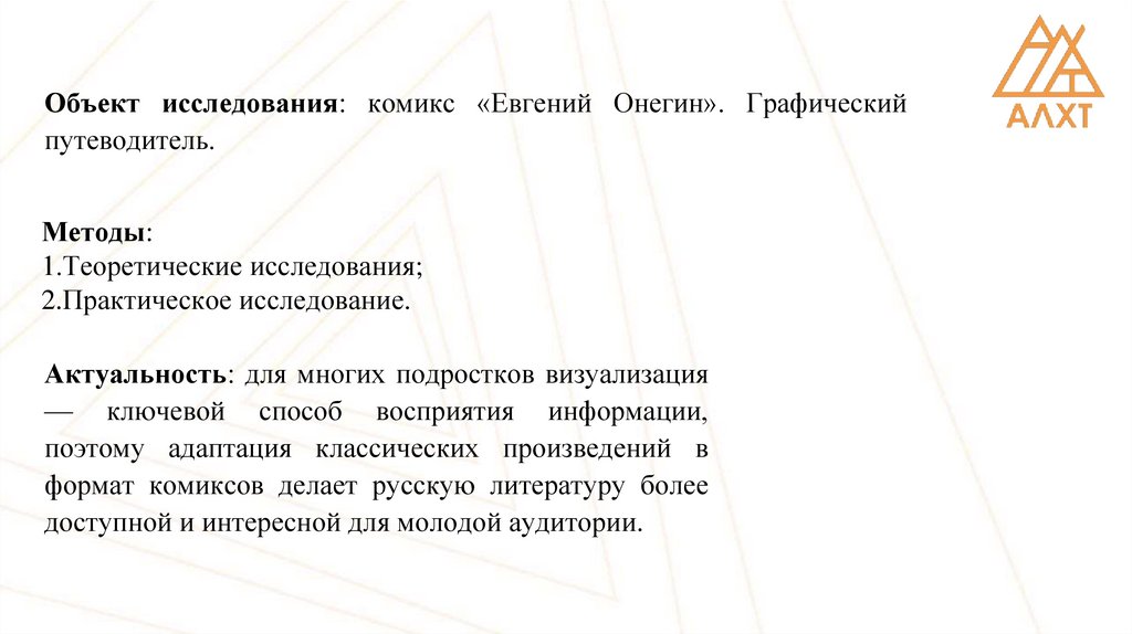 Объект исследования: комикс «Евгений Онегин». Графическийпутеводитель.
