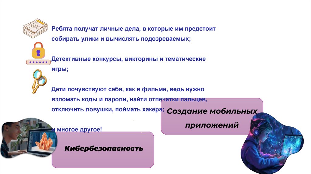 Ребята получат личные дела, в которые им предстоитсобирать улики и вычислять подозреваемых;