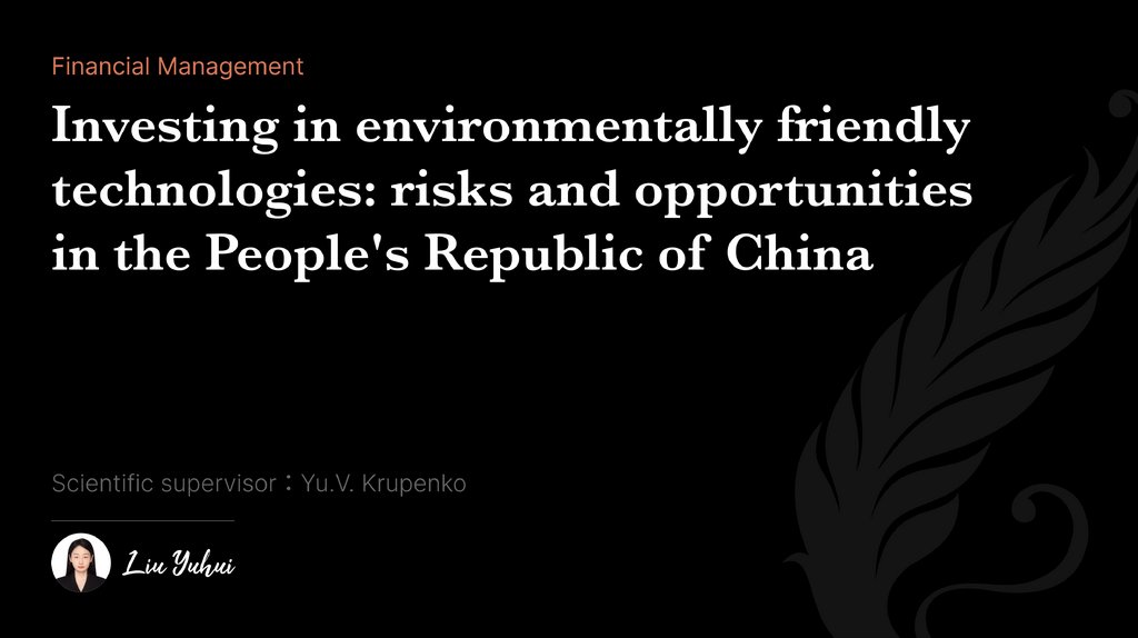 Investing in environmentally friendly technologies: risks and opportunities in the People's Republic of China