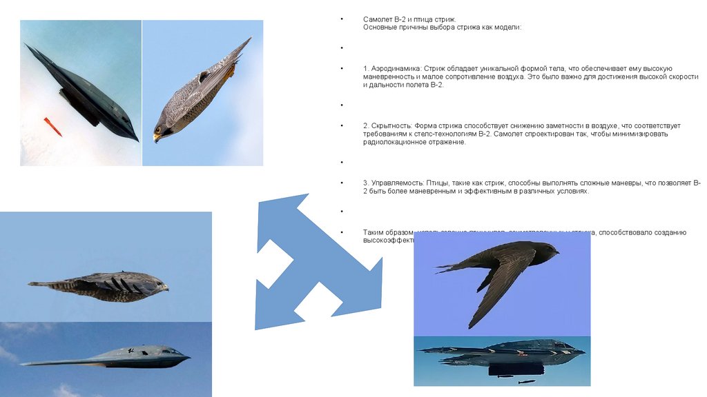 3. Управляемость: Птицы, такие как стриж, способны выполнять сложные маневры, что позволяет B2 быть более маневренным и эффективным в различных условиях.