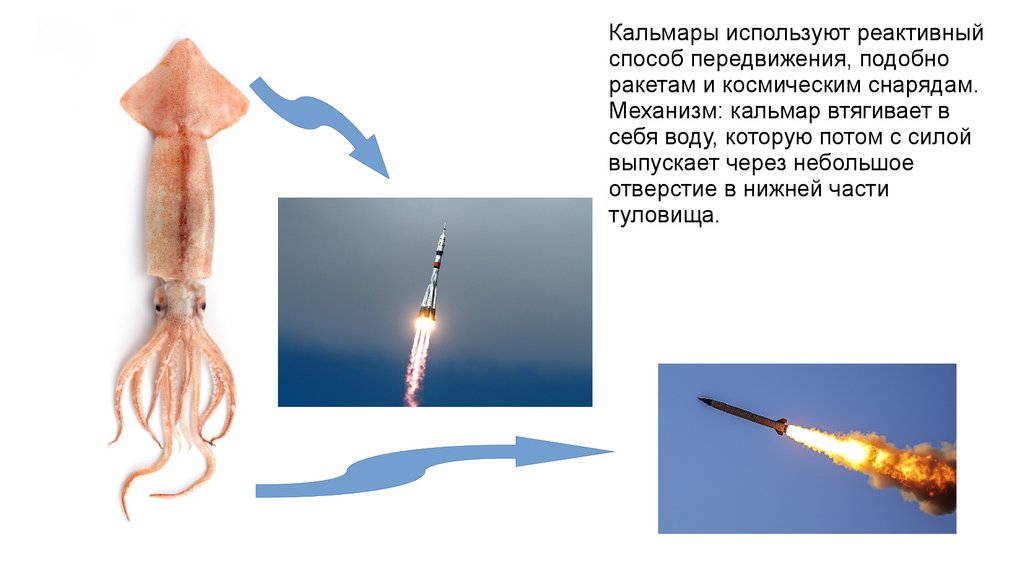 Кальмары используют реактивныйспособ передвижения, подобно