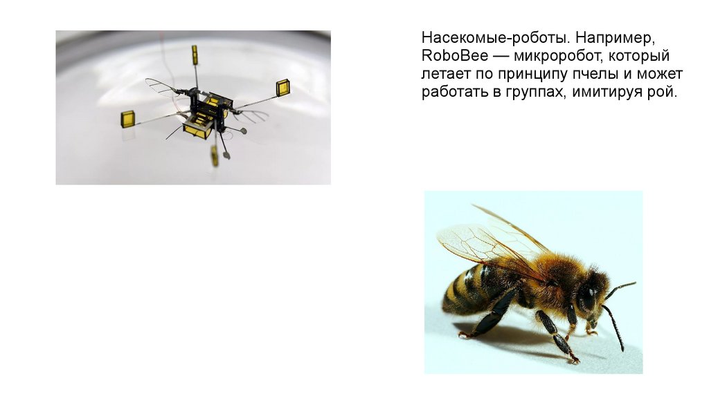 Насекомые-роботы. Например,RoboBee — микроробот, который