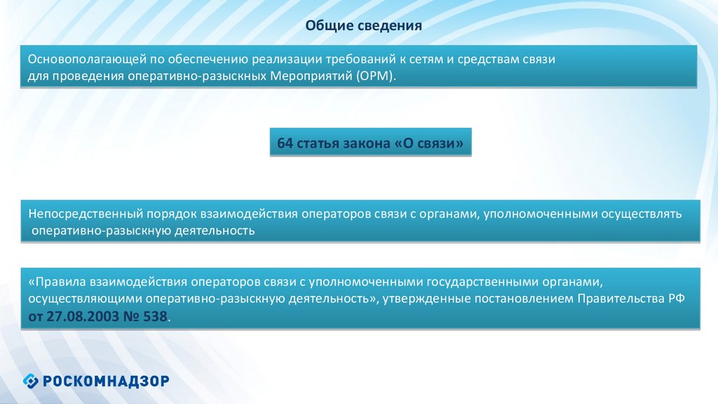 Общие сведенияОсновополагающей по обеспечению реализации требований к сетям и средствам связи